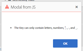 해당 오류는 신호의 키에 큰따옴표("), 점(.), 하이픈(-) 및 밑줄(_)만 포함할 수 있음을 나타냅니다.