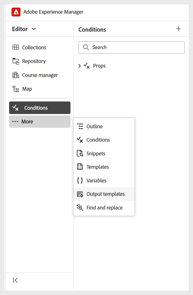 편집기의 왼쪽 패널에서 자세히 > 출력 템플릿을 선택합니다.