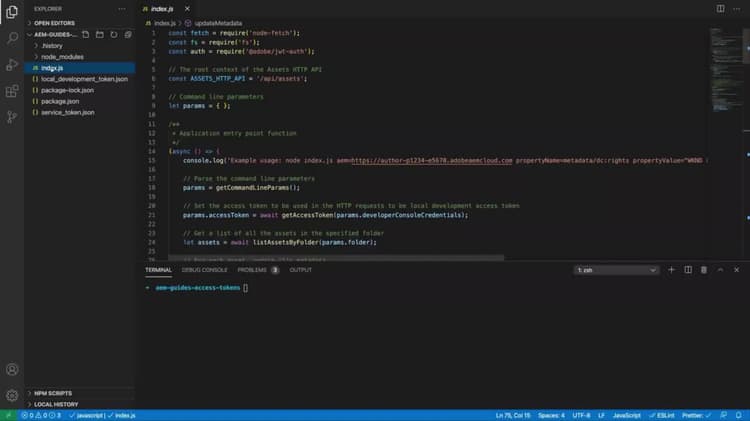이 튜토리얼에서는 명령줄에서 실행되는 간단한 Node.js 애플리케이션을 사용하여 Assets HTTP API를 통해 AEM as a Cloud Service에서 자산 메타데이터를 업데이트합니다.