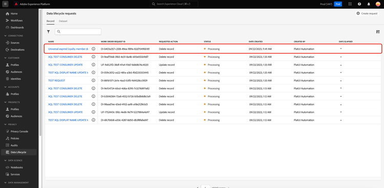 이 문서에서는 Experience Platform UI에서 레코드를 삭제하는 방법을 다룹니다. UI에서 다른 데이터 수명 주기 관리 작업을 수행하는 방법에 대한 자세한 내용은 데이터 수명 주기 UI 개요를 참조하십시오.