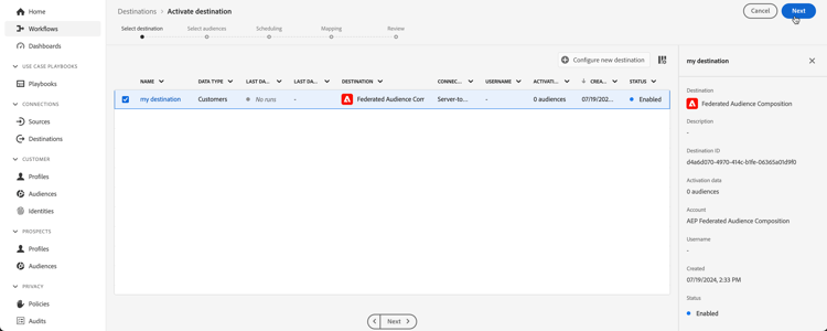 Adobe Experience Platform 대상 카탈로그에 액세스하고 Federated Audience Composition 대상을 선택합니다.