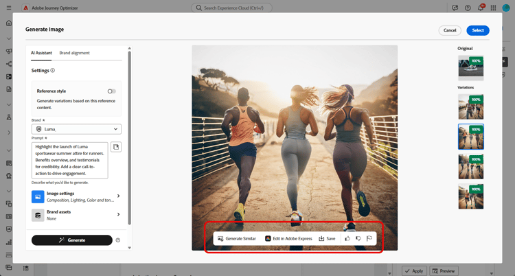 AI 관리자가 참조 콘텐츠를 기반으로 새 콘텐츠를 개인화하려면 참조 스타일 옵션을 활성화하십시오. 이미지를 업로드하여 변형에 컨텍스트를 추가할 수도 있습니다.