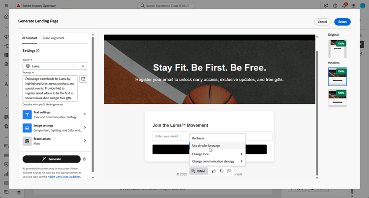 생성 AI에서 제공하는 Journey Optimizer의 AI Assistant를 사용하여 랜딩 페이지를 탈바꿈합니다.
