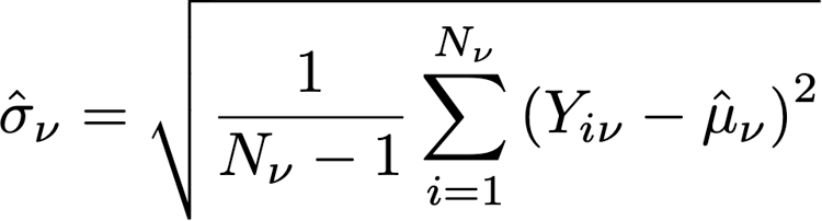 여기서 Yiν은(는) 주어진 변형 iν 에 할당된 각 프로필 에 대한 목표 지표의 값입니다. 목표 지표가 "고유" 지표인 경우, 즉 특정 작업을 수행하는 프로필 수 카운트인 경우 전환율로 표시되고 백분율로 포맷됩니다. 지표가 "count" 또는 "total value" 지표인 경우(예: 이메일 열기, 각각 매출), 지표에 대한 평균 예상치가 "프로필당 개수" 또는 "프로필당 값"으로 표시됩니다.