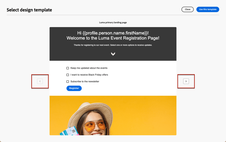 선택한 후에는 오른쪽 및 왼쪽 화살표를 사용하여 저장된 모든 템플릿 간을 탐색할 수 있습니다.