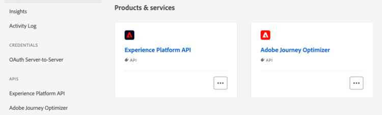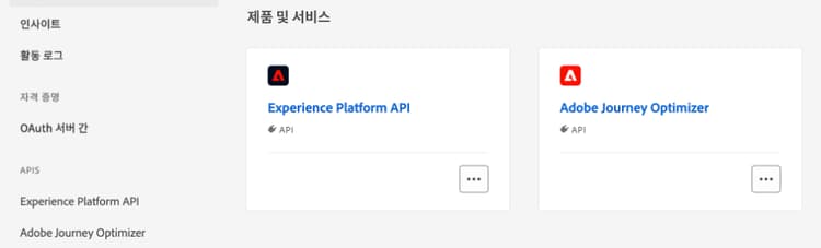 개발자 프로젝트에는 Adobe Journey Optimizer 및 Adobe Experience Platform API가 프로젝트에 추가되어 있어야 합니다.