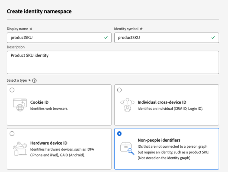 사용자 지정 네임스페이스가 아직 정의되지 않은 경우 ID가 비개인 식별자인지 확인하십시오.