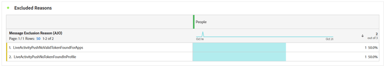 마케팅 캠페인의 iOS Live 활동의 경우 보고서에는 원격 시작 이벤트 및 원격 시작 오류만 표시됩니다. APNs에서 피드백을 제공하지 않고 모든 장치에 업데이트를 배포하므로 업데이트 및 종료 이벤트가 추적되지 않습니다. 업데이트 및 종료 이벤트를 보려면 Apple의 푸시 알림 콘솔을 사용하세요.