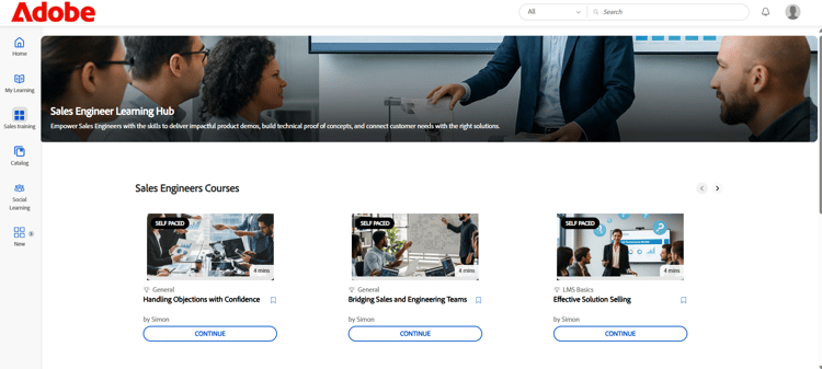 사용자 정의 전 Adobe Learning Manager 학습자 홈페이지