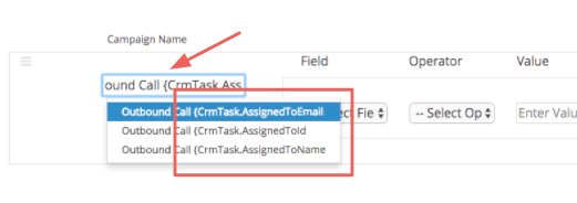 "Outbound Sales - {AssignedTo}"을(를) 입력하면 "Outbound Sales - Jill" 또는 "Outbound Sales - Jack." 같은 형식으로 변경됩니다