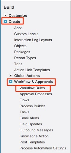 Setup > Create > Workflow & Approvals > Workflow Rules(으)로 이동합니다.