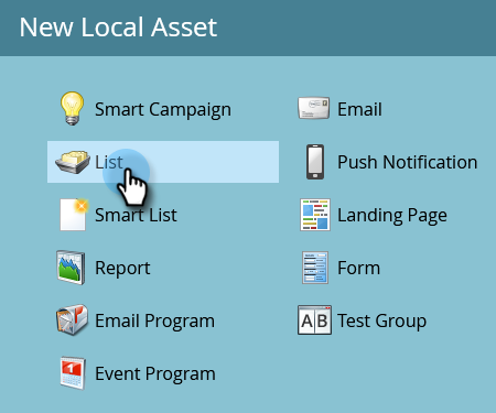 1. 내 무역 박람회 프로그램 ​에서 New ​를 클릭하고 New Local Asset ​을 선택합니다.