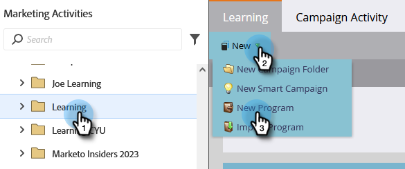2. 학습 폴더를 선택한 다음 New ​에서 New Program ​을 클릭합니다.