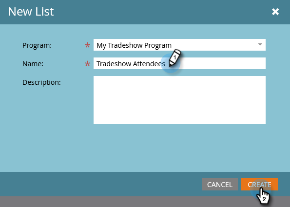 3. 목록 이름 ​을 “무역 박람회 참석자”로 지정하고 Create ​를 클릭합니다.