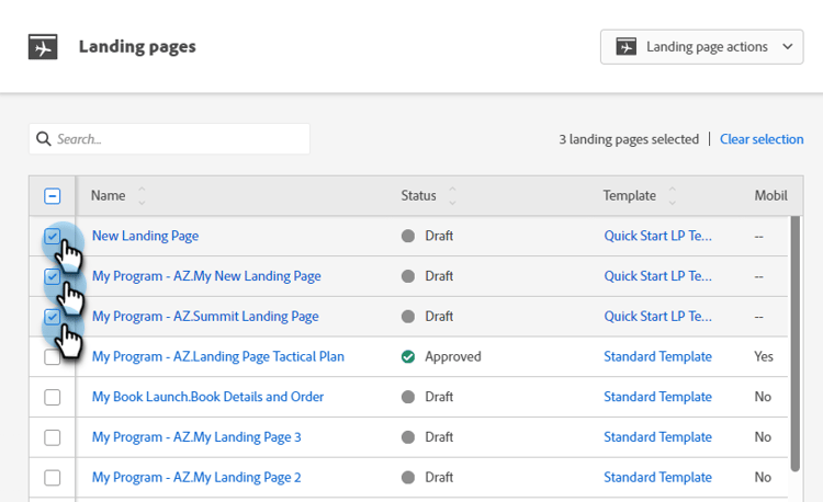 여러 랜딩 페이지를 한 번에 승인 approve-multiple-landing-pages-at-once