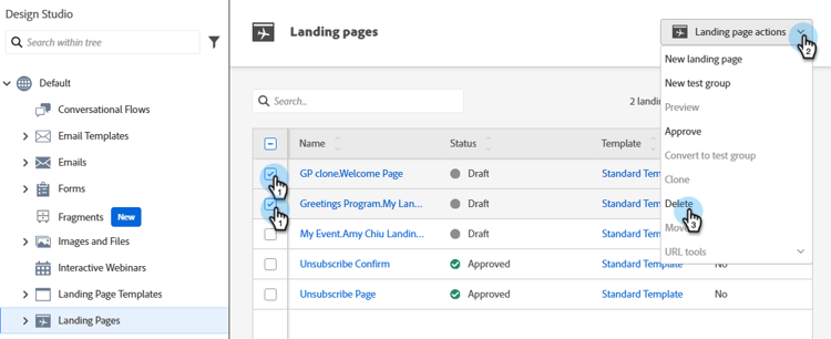 여러 랜딩 페이지 삭제 delete-multiple-landing-pages