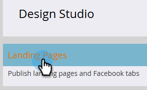 기본 Design Studio 화면에서 Landing Pages 을(를) 클릭합니다.