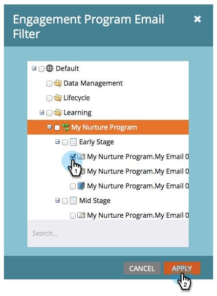 Setup 탭에서 Engagement Program Emails 필터를 두 번 클릭합니다.