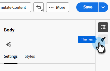 오른쪽 막대에서 테마 아이콘을 클릭합니다.