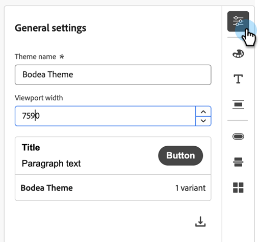 테마 이름을 지정하고 뷰포트 크기를 조정합니다.