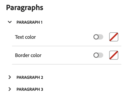 최대 3개의 단락 유형의 텍스트 및 테두리 색상을 설정합니다.