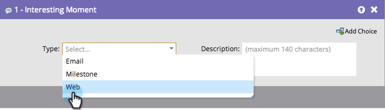 type(Email, Milestone 또는 Web)을(를) 선택하십시오.