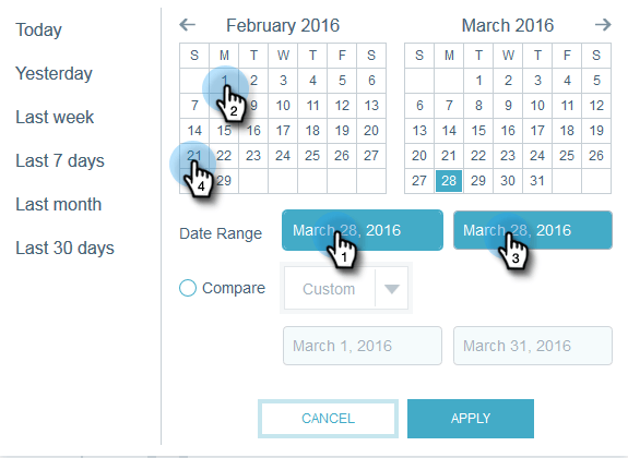 날짜 범위를 선택한 경우 Apply 을(를) 클릭합니다.