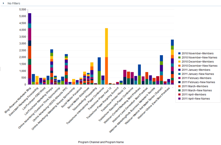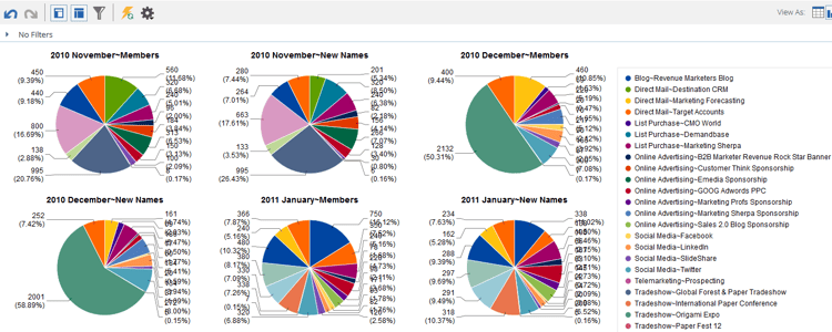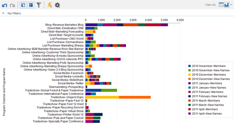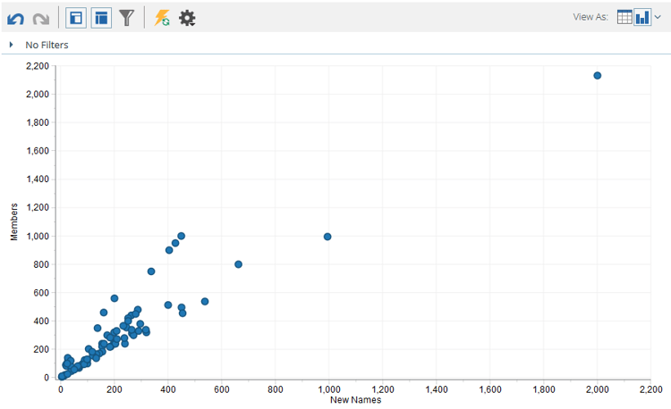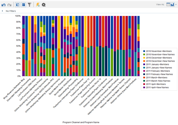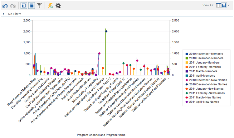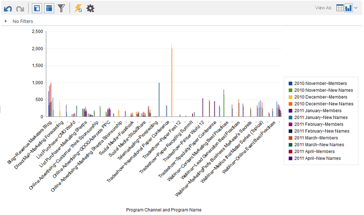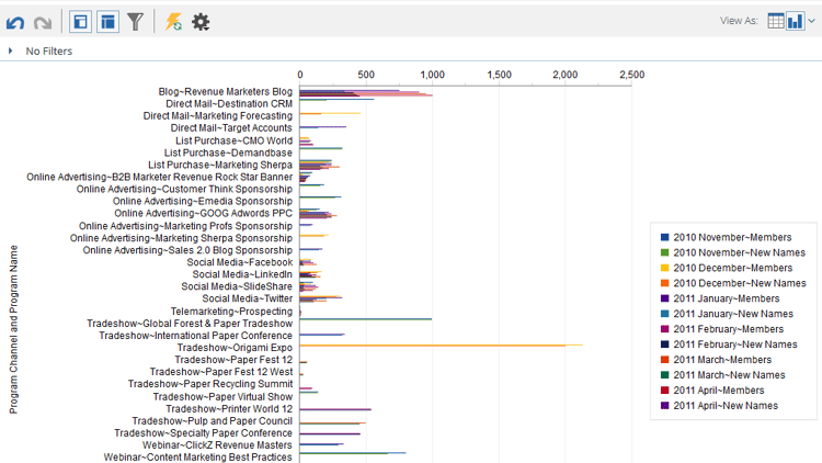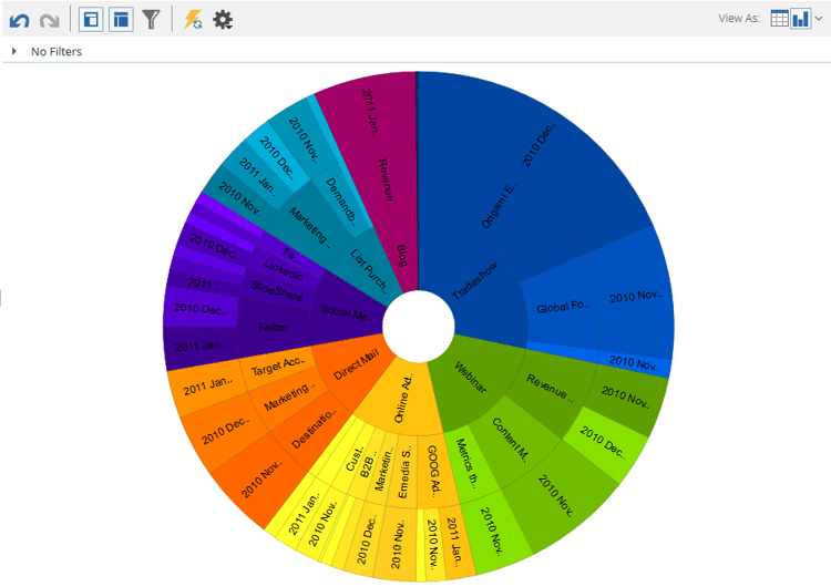 기본적으로 Revenue Explorer의 보고서는 표로 표시됩니다. 또한 결과를 다양한 형식으로 그래프로 표시할 수 있습니다.