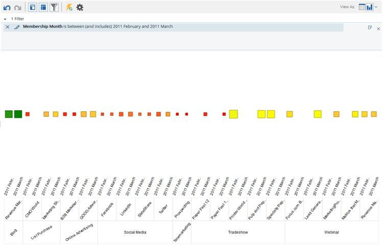 Heat Grid: 양수 및 음수 성능 패턴을 식별하도록 색상 및 모양을 사용자 지정합니다.