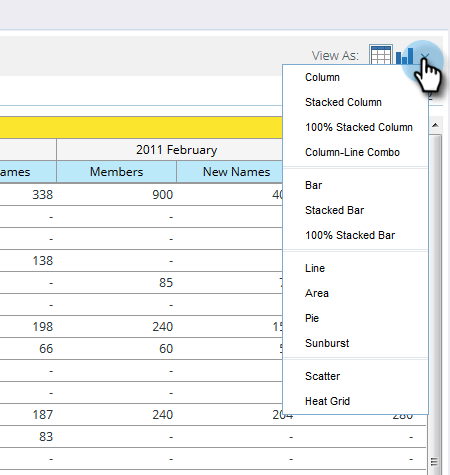 보고서의 View As 드롭다운 메뉴에서 화살표를 클릭합니다. 다른 그래프 옵션이 나타납니다.