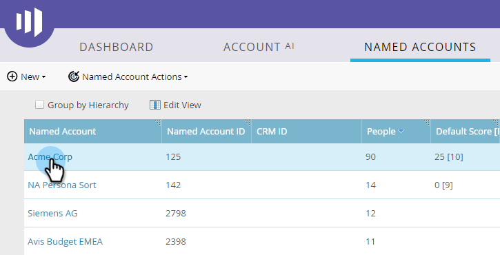 특정 Named Account을(를) 방문하여 가상 사용자를 봅니다.