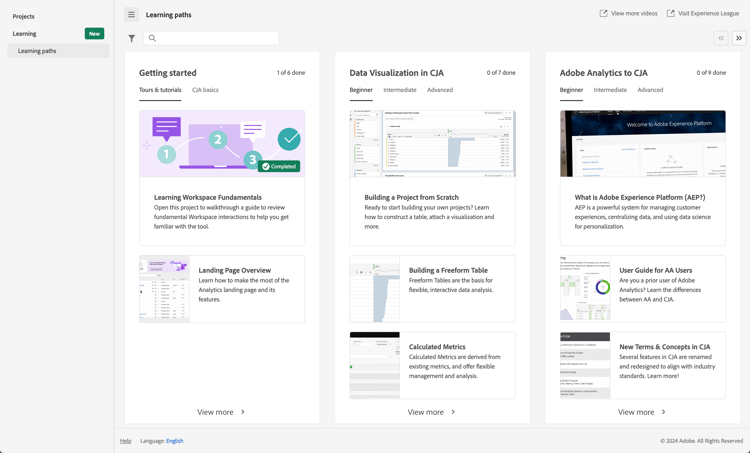 Gebruik de pagina Leren in Customer Journey Analytics voor meer informatie: