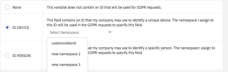 Geef een naamruimte op wanneer u een variabele labelt als ID-DEVICE of ID-PERSON provide-namespace