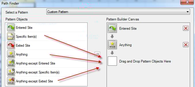 Als u een aangepast patroon wilt, sleept u Pattern Objects uit de lijst links naar de Pattern Build Canvas rechts.