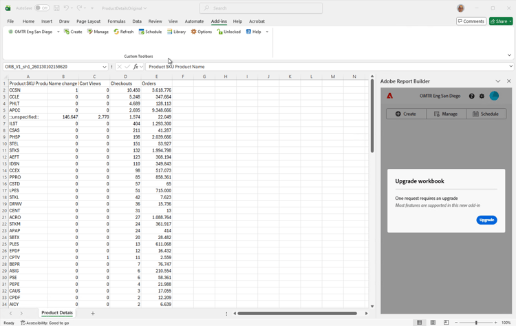 het geplande werkboek dat u van de lijst wilt omzetten, en selecteren. Het werkboek wordt gedownload en opent in een nieuw venster in Excel. U kunt het werkboek van erfenisReport Builder nu omzetten.