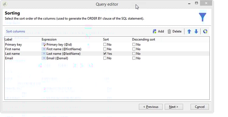 Selecteer Primary key , First name , Last name en Email in het Data to extract -venster.