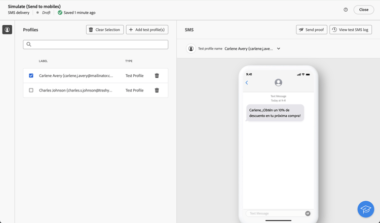 Klik op de knop Simulate content en kies profielen om een voorvertoning van de levering weer te geven. Controleer of de juiste inhoud voor elk profiel wordt weergegeven.