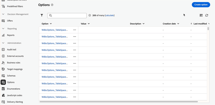 U kunt opsommingen nu rechtstreeks maken via de Adobe Campaign Web User Interface. Een opsomming is een lijst met waarden die door het systeem worden voorgesteld om velden te vullen. Gebruik opsommingen om de waarden van deze velden te standaardiseren, hulp bij gegevensinvoer of gebruik binnen query's.