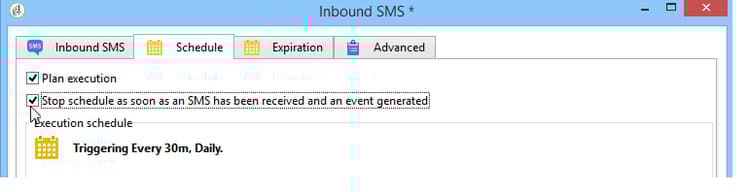 De Script, Schedule en Expiry lusjes zijn gedetailleerd in Binnenkomende E-mail .