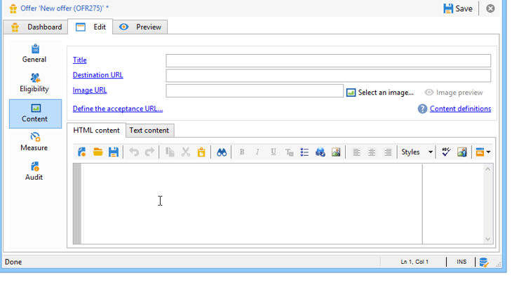 Om een aanbieding te presenteren, moeten wij een milieu en een aanbiedingsruimte in Adobe Campaign creëren, dan de pagina van HTML vormen.