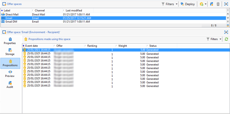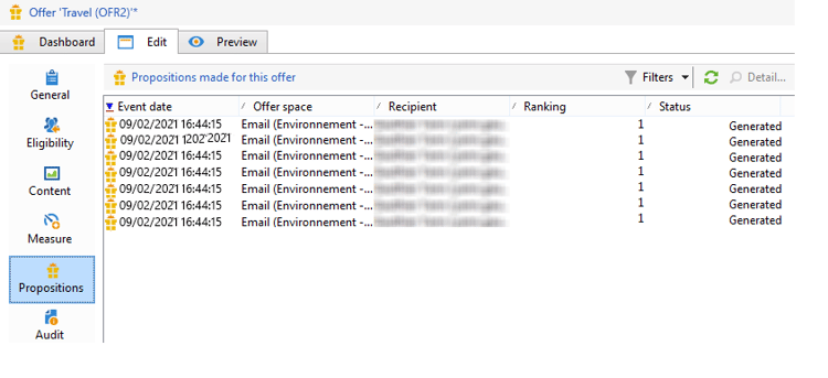 Klik op de tab Propositions op het niveau van de aanbiedingsruimte.