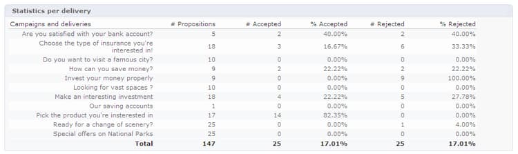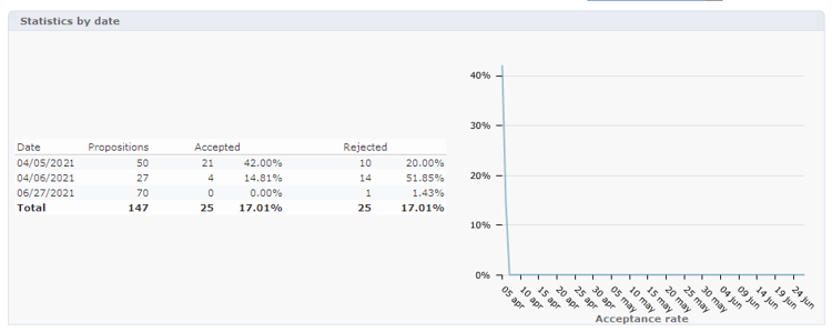 Het Offer analysis -rapport geeft een overzicht van het aantal geaccepteerde of afgewezen voorstellen.