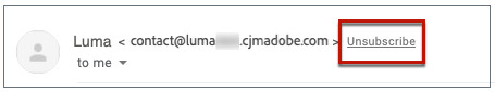 Het toont als Unsubscribe verbinding in de ISPs' e-mailinterfaces. Bijvoorbeeld:
