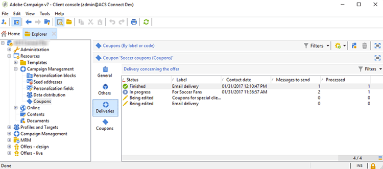 Ga naar Explorer > Resources > Campaign management > Coupons .