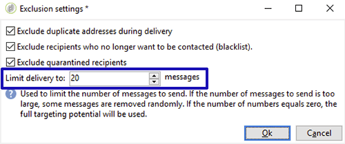 Voer het aantal berichten in dat u wilt verzenden Limit delivery to…messages en klik op Ok . U kunt de levering verzenden.