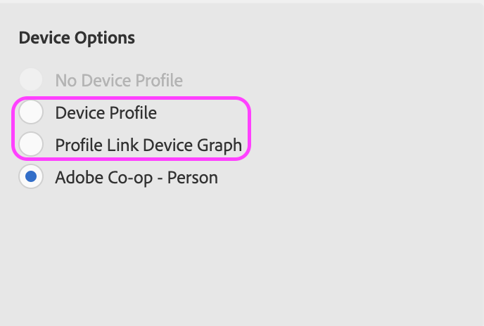 Selecteer 'Profielkoppelingsapparaatgrafiek' of 'Apparaatprofiel' om uw PMR bij te werken. Meer details over de verschillen tussen deze twee hier beschikbare opties: https://experienceleague.adobe.com/docs/audience-manager/user-guide/features/profile-merge-rules/merge-rule-definitions.html?lang=nl-NL#device-options