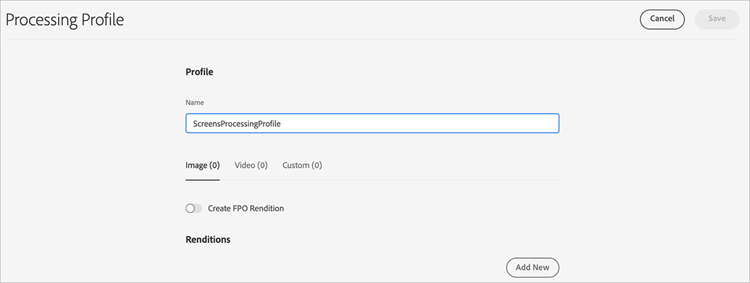 Ga de Naam, zoals ScreensProcessingProfile in.