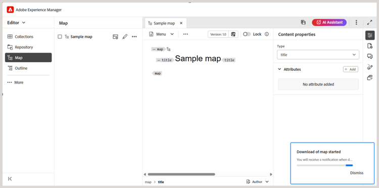 Navigeer in de gebruikersinterface van Assets naar de DITA-kaart die u wilt downloaden.