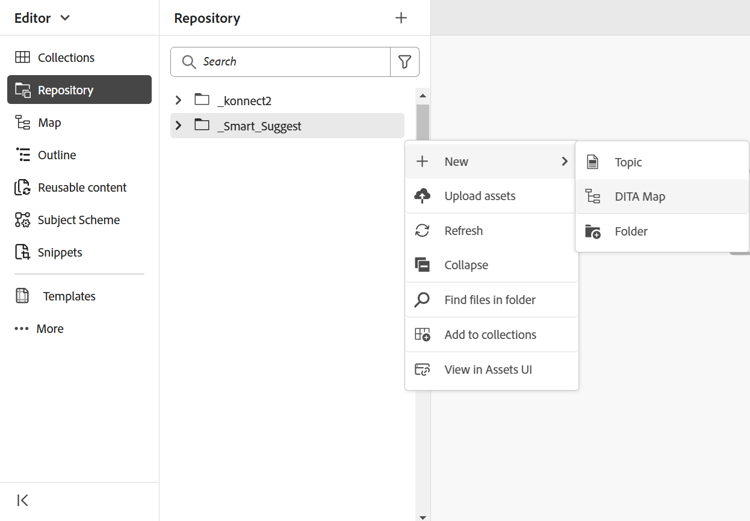 Van het menu van Opties van de omslag, uitgezochte Nieuwe > Kaart DITA.