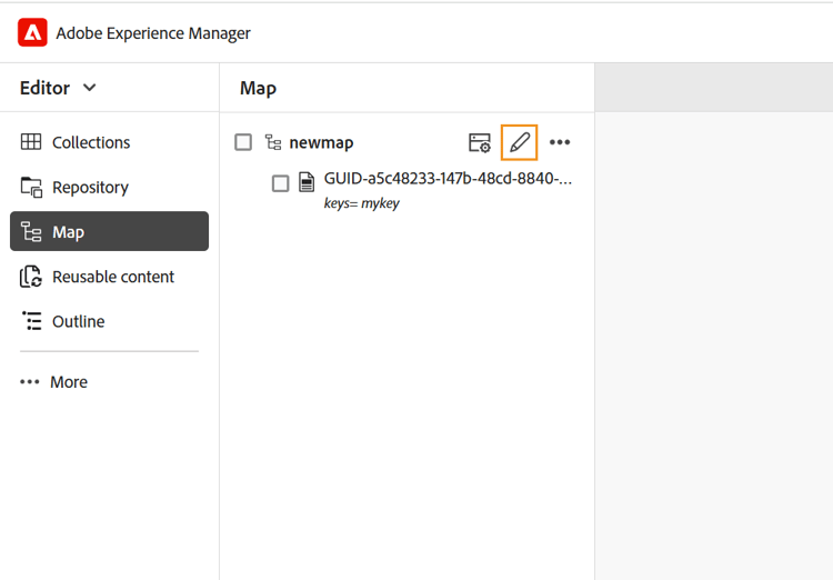 note note NOTE Als u de Geavanceerde Kaarteditor wilt gebruiken, opent u het kaartbestand in de Editor. Als uw beheerder de Geavanceerde Redacteur van de Kaart als standaardredacteur in de kaartdossiers heeft gevormd, dan wordt het kaartdossier geopend direct in de Geavanceerde Redacteur van de Kaart voor het uitgeven. De mening plaatst de Geavanceerde Redacteur van de Kaart als standaard sectie in installeer en vorm Adobe Experience Manager Guides as a Cloud Service.